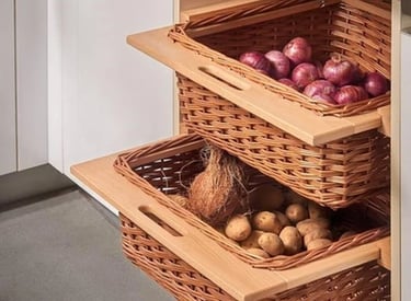 Wicker baskets offer a stylish and practical storage solution for modular kitchens and wardrobes. Lightweight yet sturdy, they provide proper ventilation and are ideal for storing vegetables, clothes, or daily essentials neatly.