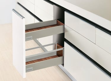 German-engineered Hettich soft-close hinges ensure smooth, silent, and controlled shutter closing. Built for precision and durability, they prevent slamming, reduce wear and tear, and enhance the long-term performance of kitchen and wardrobe cabinets.