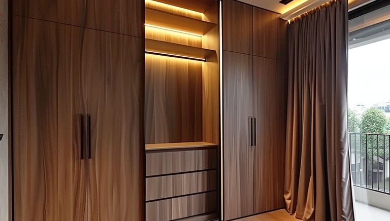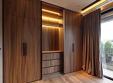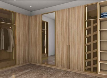 Transform your wardrobe space into a personalized luxury haven with our tailor-made designs. Whether you prefer a classic wooden finish, a sleek modern look, or a minimalist aesthetic, we customize every detail to suit your style and storage needs.